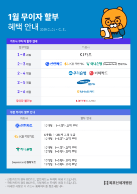 2025년 1월 카드사별 무이자&부분 무이자 할부 혜택을 안내드립니다.