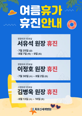 목포신세계병원 2025년 여름휴가 휴진 안내 이미지